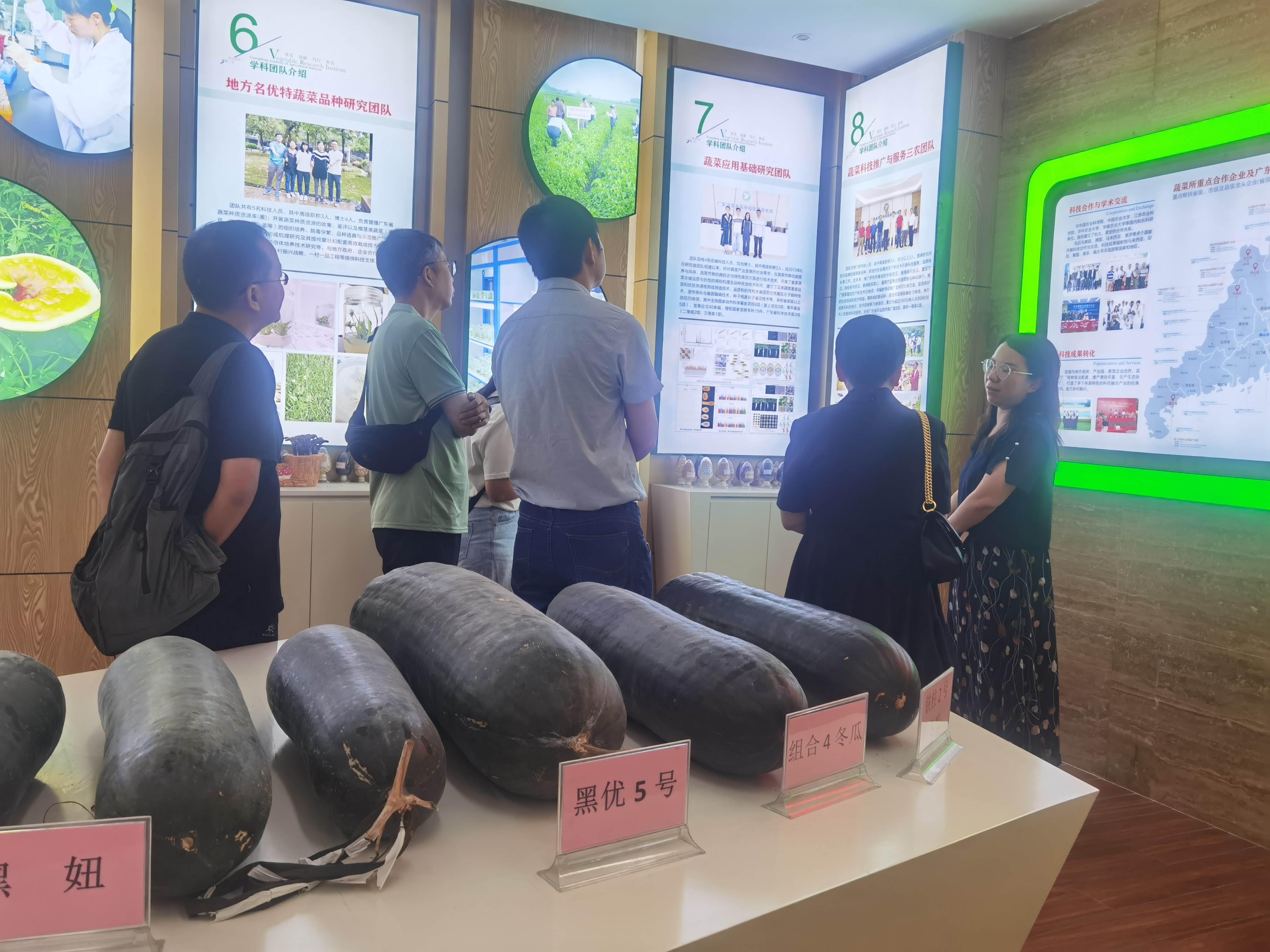 陈秀娟一行先后参观了我所科技成果展厅、国家蔬菜种质资源库(华南分库)。随后,双方开展座谈交流。会上,曾秀媚介绍了广东蔬菜产业现状、蔬菜所品种技术、科技创新、乡村振兴、服务产业和科技合作等情况。双方围绕成果转化、蔬菜育种、设施栽培等内容进行了充分交流和探讨。陈秀娟表示,这次到我所调研收获颇丰,对广东蔬菜产业和蔬菜所的工作有了更进一步了解,希望以此为契机,双方在科技创新、成果转化、科技服务、设施农业发展等方面进一步加强交流与合作。