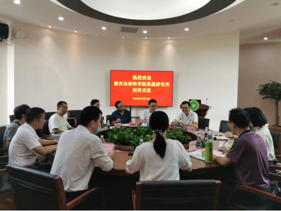 10月10日,肇庆市农林科学院果蔬研究所所长陈水莲、副所长丘勇平、副所长刘裕深等一行6人到我所调研交流。我所副所长江彪及各研究室科技骨干参加座谈。