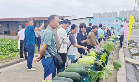 开幕式后在我所会议室召开产业研讨会。我所三位科技人员分别分享了我所在科技支撑连州菜心、德庆小黄瓜、客家土椒三个蔬菜土特产发展的成功经验,为参会者提供宝贵的行业洞察与经验借鉴。18日下午,与会人员参观了我所在大丰基地的新品种新技术展示基地。本次在大丰基地展示了120多个华南特色瓜类、叶菜类等最新品种,包括赏食兼用型、功能保健型、加工专用型等多个专用品种。