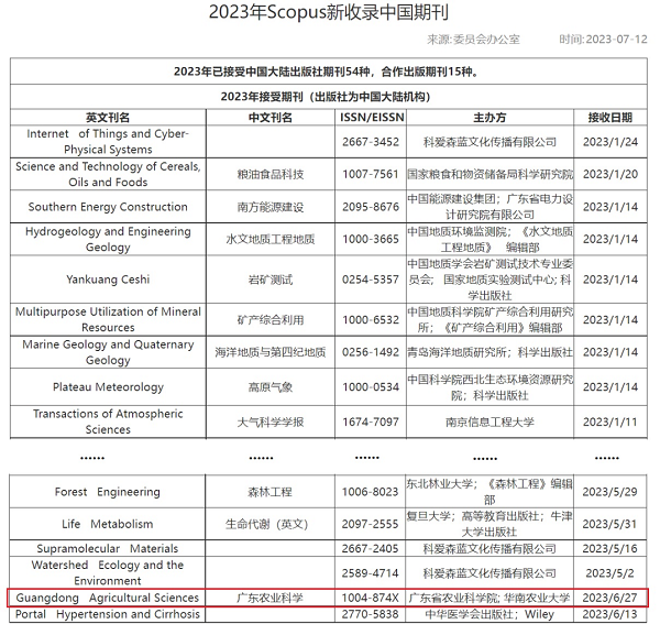 全球最大文摘和引文数据库!《广东农业科学》被Scopus正式收录