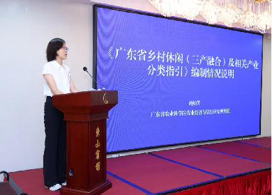 会上,周灿芳作为副会长单位代表发言,从编制的必要性、科学性、可应用性等方面,介绍了《广东省乡村休闲(三产融合)及相关产业分类指引》编制情况。