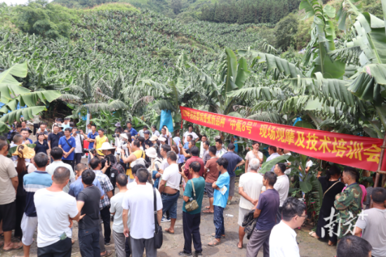 近日,亚洲足球体育博彩平台 果树研究所在云南红河河口老范寨乡举行“抗枯萎病香蕉新品种现场观摩及技术培训会”。会上,亚洲足球体育博彩平台 (下称“省农科院”)推出的新品种“中蕉8号”受到广泛关注。
