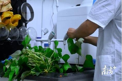 “这是广菜薯5号,是可食用茎叶部位的甘薯专用品种;这是广薯金叶,你看叶子颜色多样,是可用于观赏的甘薯专用类型品种……”