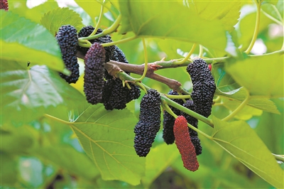 除了“粤椹大10”,科研人员还培育了“粤椹74”“粤椹28”“粤椹33”等果用桑新品种,这些新品种桑葚除了直接用于鲜食外,还可以用于酿酒、果汁加工、绿化观果等。