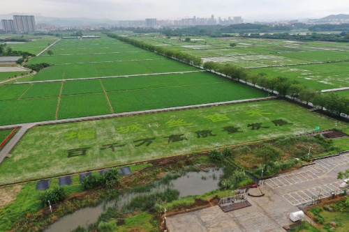 广州增城区是“丝苗米之乡”。走进增城区丝苗米现代农业产业园,一排排水稻抽穗整齐,长势良好。无人机飞手卿洁正忙碌穿梭在田间,为稻田喷洒农药。