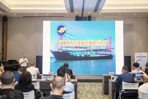 为追寻现代渔业技术之“光”,广东省农科院动科所(水产所)水产研究室主任黄文在报告中提到,他与团队通过创建“三元”渔光一体养殖技术实现高效养鱼、尾水处理、光伏发电三元一体,对升级渔业及拓展光伏发电空间具有同步促进作用。中国海洋大学水产学院教授李贤分享了大菱鲆感光系统发育特征及不同光谱环境下的生长发育、生理响应的研究。宁波大学海洋学院副教授史策阐释了光谱对拟穴青蟹生长、存活的影响,全光谱12小时光照能够促其生长并提高蜕壳同步性。广东海洋大学教授熊正烨介绍了LED集鱼灯研究的最新进展。广州承影照明科技有限公司总经理黄国鹏表示,在加快推广渔船升级改造的进程中,应破解LED集鱼灯行业困局,重视其推广与应用。好亮固体光源研究所所长许东提出,要从根本上解决目前集鱼灯采用光度学理论的错误逻辑问题,并认为集鱼灯还有很大的发展空间。