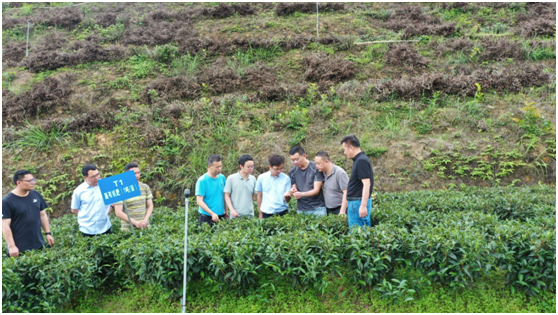 随后,专家团与工作队来到了信德家茶庄园,根据工作队向专家团提出的该茶园存在施肥技术与老茶树死亡等两个针对性问题,专家团开展了实地调研,在茶园现场,国彬副研究员向企业负责人进行了施肥技术指导,从施肥方法与时间等方面讲解了如何科学合理的施用肥料,提高茶园土壤供肥能力,同时,对老茶树土壤进行剖面分析与取样,初步诊断老茶树死亡是因为树体营养缺乏导致。茶企负责人苏平表示“过去做农业都是靠天吃饭,发现问题也不知道怎么联系专家,现在镇里来了科技特派员专家团,我以后要多请教多学习,努力提高技术水平。”