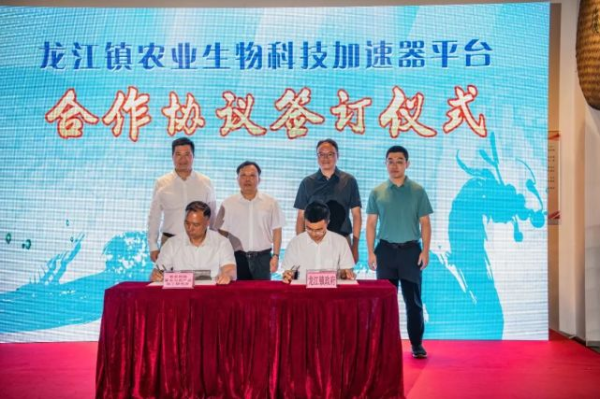 龙江镇农业生物科技加速器平台合作协议签订仪式。