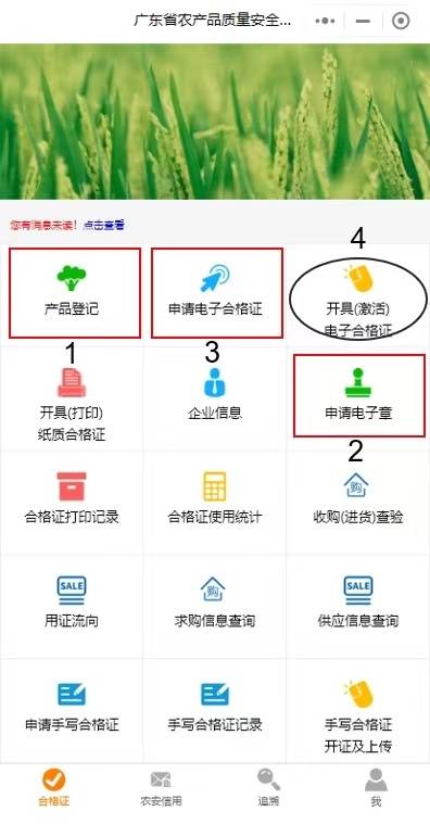 注册完成后,首次需要进行产品登记、申请电子合格证、申请电子章,完成后合格证上便会有章、有产品、有标签。