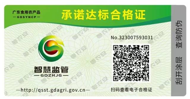 指导意义:承诺达标合格证是农产品的身份证,可查看农产品名称、产地、生产者等信息,实现农产品生产、流通各环节来源可查询、去向可追踪。