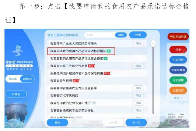 农户也可以选择“粤智助”政府服务自助机自行打印纸质版农产品承诺达标合格证。