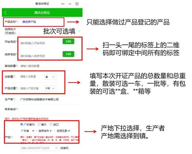 收到合格证标签后,就可扫描合格证上的号段,填写相关信息后便可完成激活。