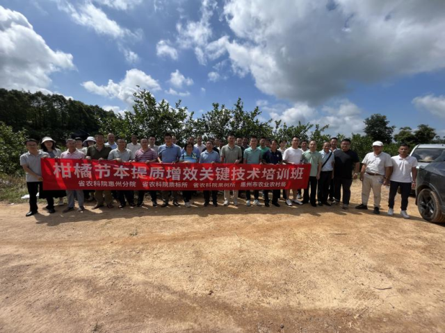为推动柑橘产业高质量、高效益发展,推广柑橘节本提质增效关键技术,8月25日,在惠州市柠檬提质增效关键技术应用与示范基地,省农科院惠州分院联合省农科院质标所、果树所及博罗县农业农村综合服务中心共同举办柑橘节本提质增效关键技术培训班。