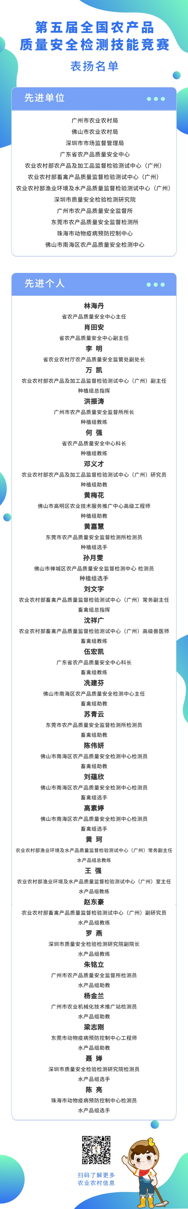希望各地区各有关部门以本次大赛为契机,以县级检测机构能力提升三年行动为抓手,充分发挥获奖选手和指导专家的引领作用,持续组织开展全覆盖培训、常态化练兵,培养更多技术骨干,为全面提升我省农产品质量安全监管工作提供更有力的技术支撑,助力全面实施“百县千镇万村高质量发展工程”和广东农业强省建设。