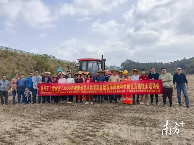 为贯彻落实粮食安全战略部署,推进撂荒地复耕复种工作,近日,惠州市(惠城区)2025年撂荒地节水抗旱稻春播现场观摩和机械化直播技术培训会在惠城区汝湖镇举办,活动由省农业科学院农业质量标准与监测技术研究所联合惠州市农业农村局(广东省农科院惠州分院)联合主办,农技人员、种粮大户及相关农业企业代表共计50多人参加。