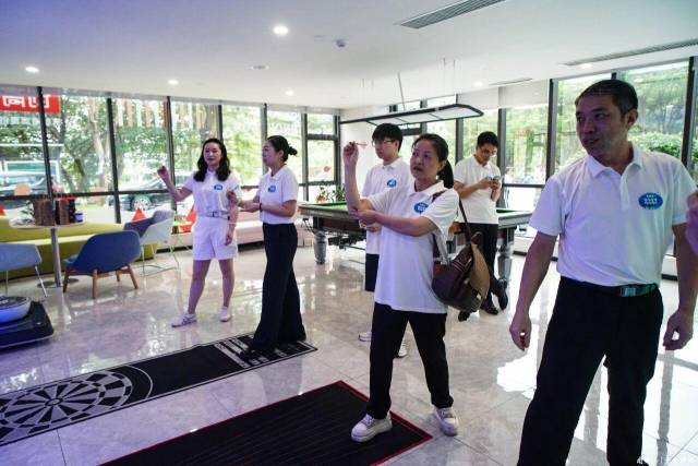在“潮人三项”环节,大家踊跃参与攻防箭、飞镖、冰壶等运动,以体育为纽带,增进穗港澳三地青年的友谊,为迎接全运会营造良好氛围。
