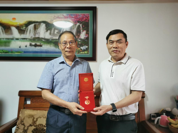 走访慰问中,刘子放为党龄满50年的张松意同志送上“光荣在党50年”纪念章,与退休老党员亲切交谈、共话家常,悉心询问老同志们的身体状况和家庭情况,并送上慰问品。刘子放代表所党委感谢老同志们为党和农科事业作出的贡献,衷心希望老同志在保重身体的同时,继续发挥老党员的带领传承作用,推动党的事业薪火相传,为动科事业高质量发展出谋划策。