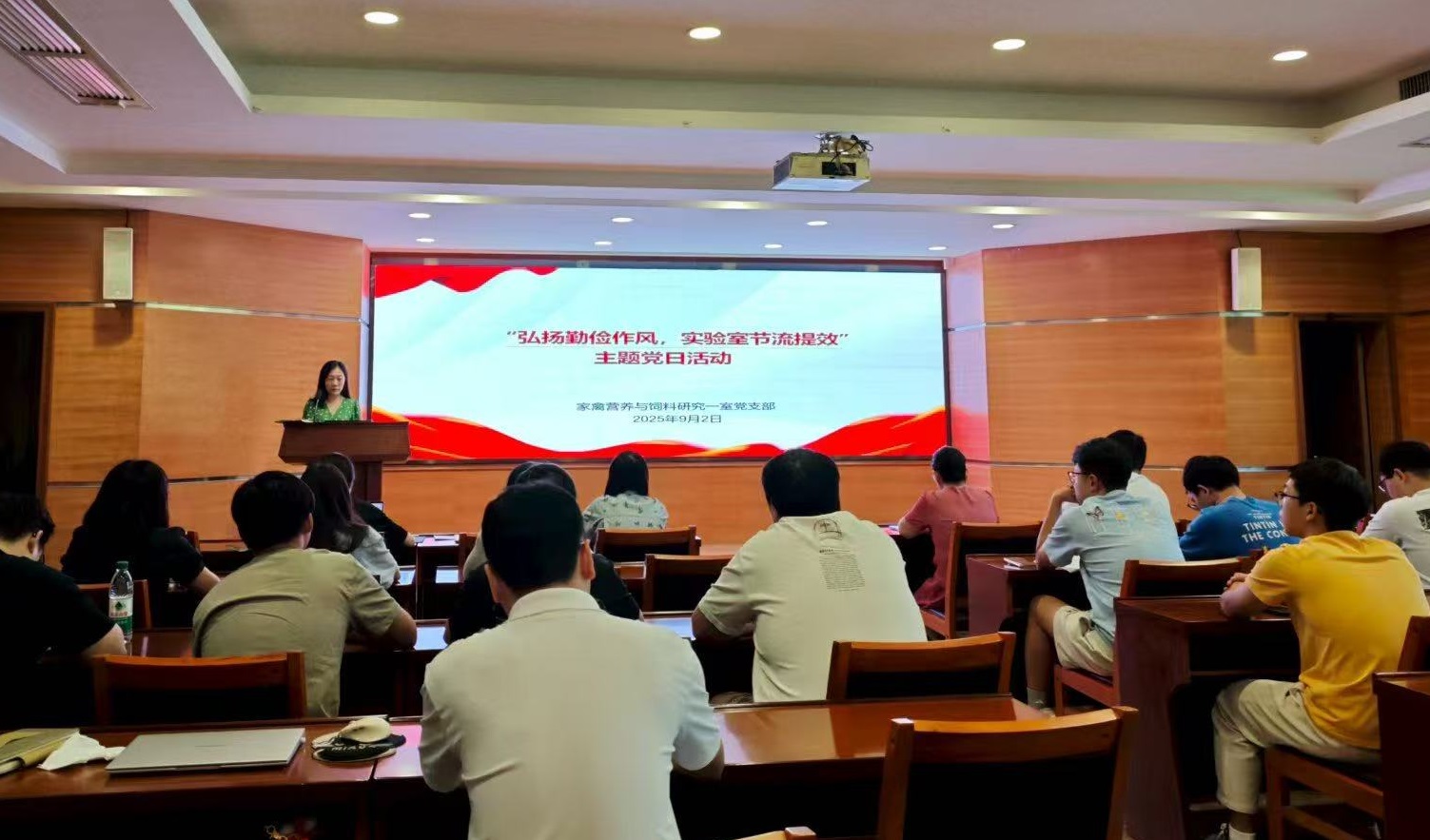 为深入贯彻中央八项规定精神学习教育,锲而不舍落实中央八项规定精神,结合院所“开源节流”工作精神,弘扬厉行节约、反对浪费的工作作风,结合实际科研工作情况,9月2日,动科所家禽营养与饲料研究一室党支部组织召开了“弘扬勤俭作风,实验室节流提效”主题党日活动。支部党员同志、联培学生党员等20余人参会,活动由支部纪检委员王一冰主持。