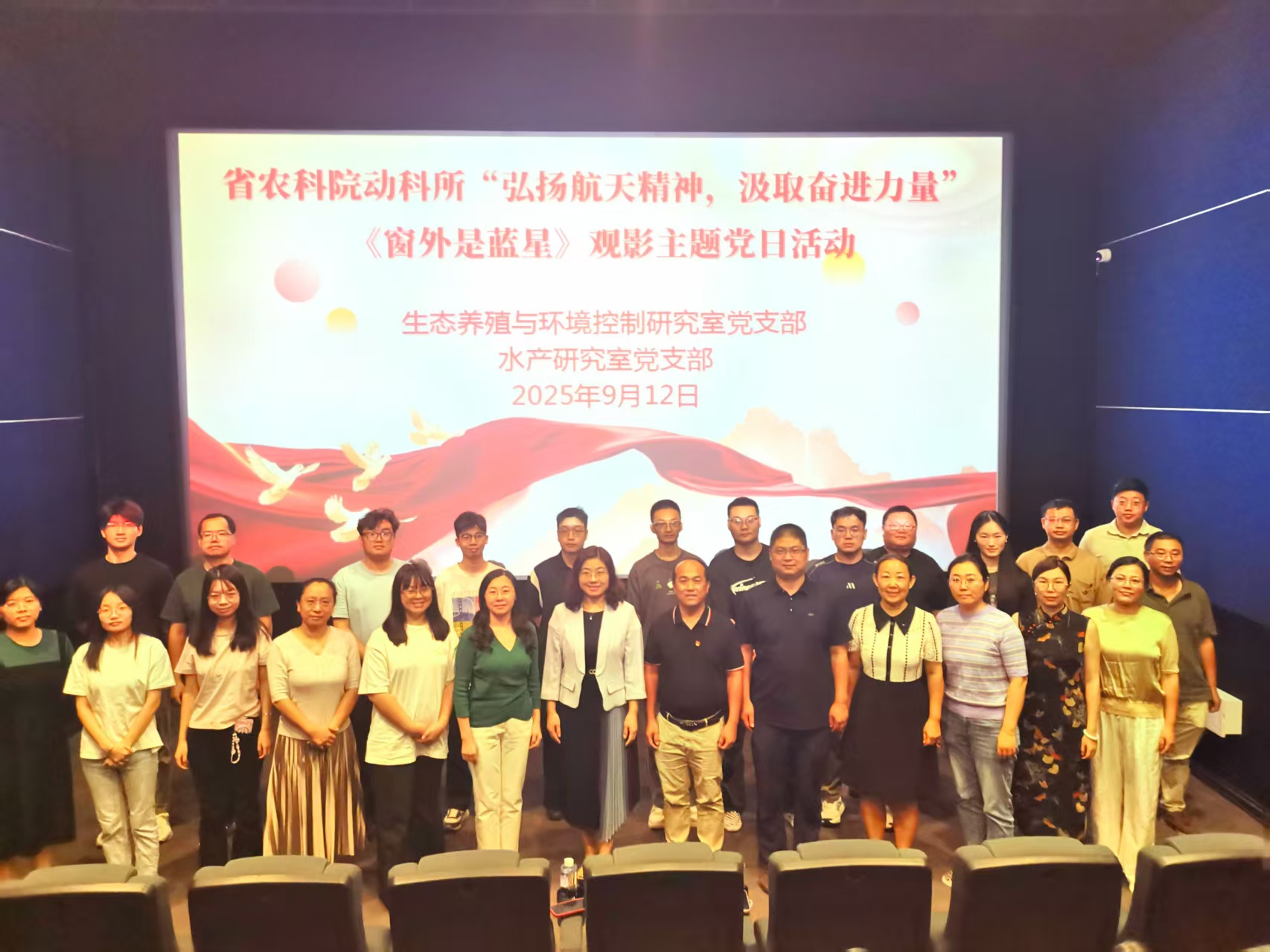 为深入贯彻落实省委宣传部关于弘扬航天精神的号召,进一步增强党员同志的使命感和责任感,9月12日上午,动科所生态养殖与环境控制研究室党支部与水产研究室党支部联合开展“弘扬航天精神,汲取奋进力量”主题党日活动,集中观看航天题材纪录电影《窗外是蓝星》。动科所副所长王丽与两个支部党员一同参加活动。