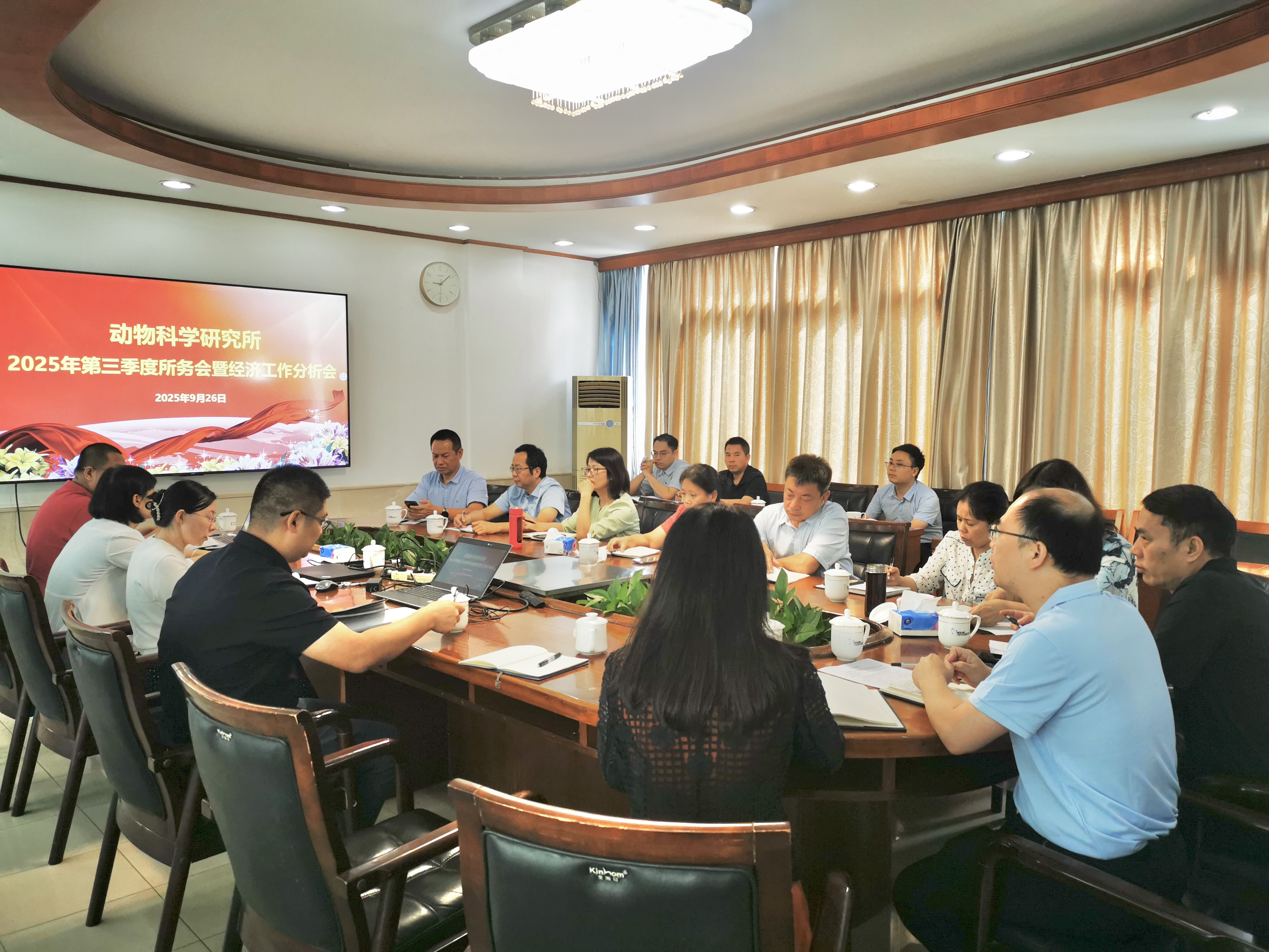 2025年9月26日,动科所召开第三季度所务会议暨经济工作分析会议。所领导班子成员、所属各部门负责人参会,会议由所长罗成龙主持。