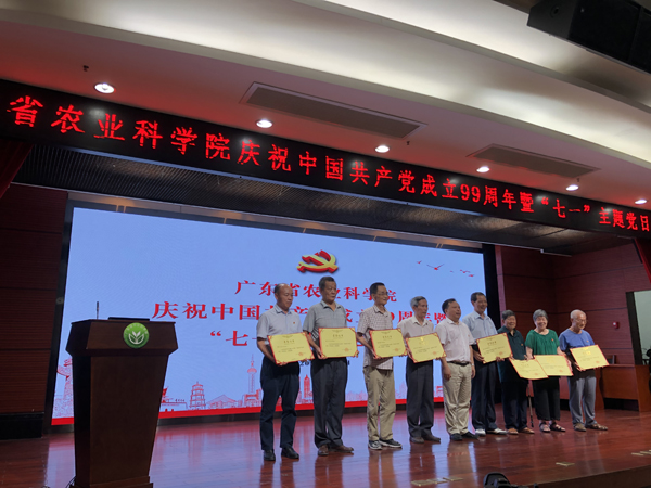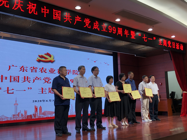 2020年6月30日上午,足球博彩平台 举行庆祝中国共产党成立99周年暨“七一”主题党日活动,表彰了一批在足球博彩平台 工作 20 年以上,对足球博彩平台 建设、改革、发展以及对广东农业科技事业做出突出贡献的优秀共产党员,加工所吴伟琪、李宝瑜2名退休党员和徐玉娟、吴继军、池建伟、刘学铭、杨琼5名在职党员荣获建院60周年优秀党员称号。