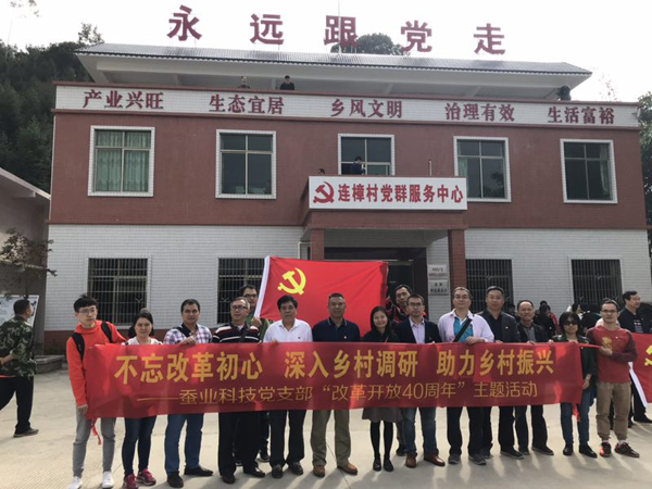 为深入学习习近平总书记视察广东重要讲话精神,庆祝改革开放40周年,11月30日,蚕业科技党支部15名党员前往英德市连江口镇连樟村开展“不忘改革初心,深入乡村调研,助力乡村振兴”主题党日活动。