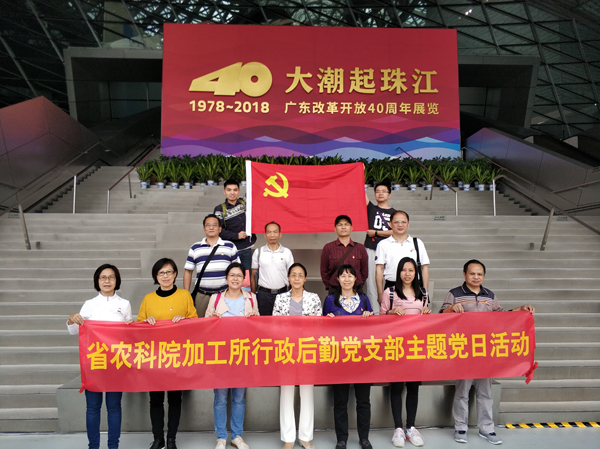 首先,支部全体党员参观了“大潮起珠江-广东改革开放40周年展览”。广东改革开放40年的壮阔历程和辉煌成就以“敢为人先 勇立潮头”(1978-1992)、“增创优势 砥砺前行”(1992-2012)、“走在前列 当好窗口”(2012-2018)三个板块,按时间脉络一一展出,虽然参观只有短短几十分钟,但现场通过大量图片、数据、历史文物、逼真模型以及现代高科技手段模拟场景,再现了这一恢弘历史画面。当前院所正掀起深入学习贯彻习近平总书记视察广东重要讲话精神热潮,作为行政后勤管理党支部党员只有深刻认识“习近平总书记重要讲话”精神的政治、现实和历史意义,学习老一辈共产党员敢为人先,勇于担当、敢于作为的奋斗精神,不忘初心,牢记使命,不断激励工作热情和革命干劲,才能履行好工作职责,为科技支撑乡村振兴、建设一流农科院科研所及创建“模范机关”,发挥好行政后勤管理服务部门应有的积极作用和 “窗口”的示范作用。