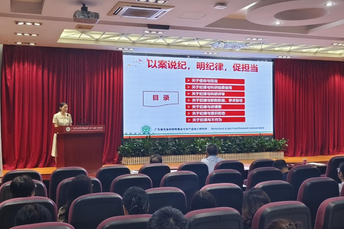 所党委副书记、所长徐玉娟以“学条例 明纪律 促担当”为题讲纪律党课。她从纪律与科研经费、科研评审、职称职务、讲课费、意识形态等角度切入,结合典型案例,以案说纪,警醒全体党员干部要始终牢记党的使命担当,深入推进“百县千镇万村高质量发展工程”,努力将我所建设成为在国内外有鲜明特色和较大影响力的一流省级研究所。