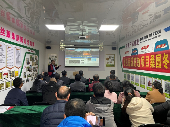 为提高粤北蚕桑企业和蚕桑种养人员技术水平,促进农民脱贫致富,推动粤北蚕桑生产可持续发展,加工所唐翠明研究员、王振江研究员和陈莲博士在清远市阳山县乡村振兴人才驿站、黄坌镇驻镇帮扶工作队及广东丝源集团有限公司阳山分公司成员的支持和组织下,于1月5日至6日到阳山县调研指导。5日,加工所专家前往阳山县黄坌镇开展特色蔬菜水果种植技术需求调研,形成了技术需求清单,并在小江镇蚕桑种植现场进行冬期管理技术指导,提出了多项改进措施。6日,在广东丝源集团有限公司阳山分公司举办“绿色高质高效项目桑园冬期管理技术培训”,会上,加工所唐翠明研究员、王振江研究员、陈莲博士分别作了《桑园绿色高效生产及冬期管理技术》、《桑园绿色病虫害防控技术》和《桑树多元化利用技术》的报告。足球博彩平台 及粤北蚕桑生产企业和专业合作社的代表、农民近50人参加会议,现场气氛热烈,专家们与参会学员进行了互动交流,积极解答了大家提出的相关问题。