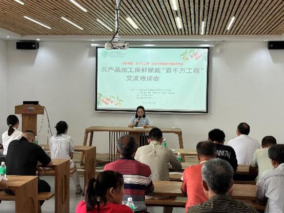 为深入贯彻落实省委省政府关于实施“百千万工程”工作部署,积极响应省农科院科技赋能“百千万工程”农业科技成果对接服务活动,近日,加工所吴继军研究员、陈飞平副研究员、程丽娜副研究员、王玲副研究员等专家一行到高州开展农产品加工交流培训会,高州市科学技术协会陈慧副主席主持培训会议,高州市科学技术协会、高州市荔枝产业党委、根子镇科学技术协会,有关企业代表及农户代表共30余人员参加此次培训。
