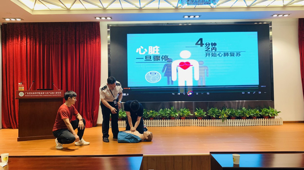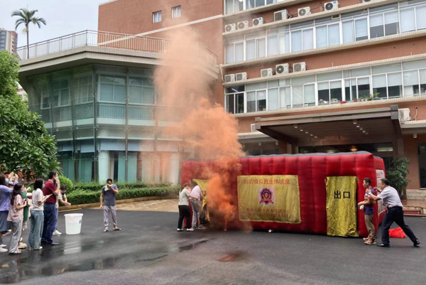 随后开展安全培训演练:消防安全理论知识、紧急心肺复苏术实操、消防模拟逃生体验。粤消安教官黄志峰讲授消防安全理论知识,通过剖析实际火警案例,引起大家共鸣,让职工们体会到“安全无小事,事事当警醒”。在心肺复苏救助教学上,黄教官结合课件,在心肺复苏模拟假人上演示如何对昏迷者实施心肺复苏救助,经示范后,邀请参会人员亲临体验,基本掌握心肺复苏救助应急技能。最后开展消防模拟逃生演练,普及逃生知识。