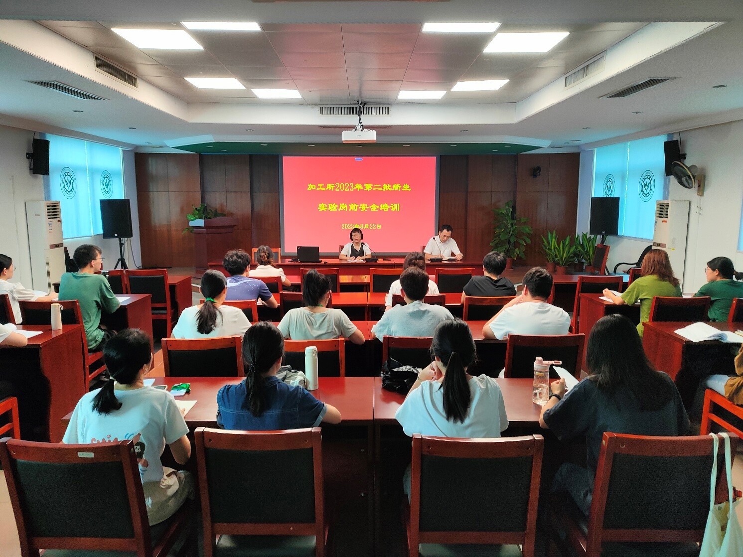 为进一步加强联培生的规范管理工作,强化实验操作的安全防范意识,确保实验工作安全开展,加工所于2023年8月22日举办了第二批新生实验安全工作岗前培训,加工所副所长邹宇晓、中心实验室工作人员及新进研究生共40余人参加。