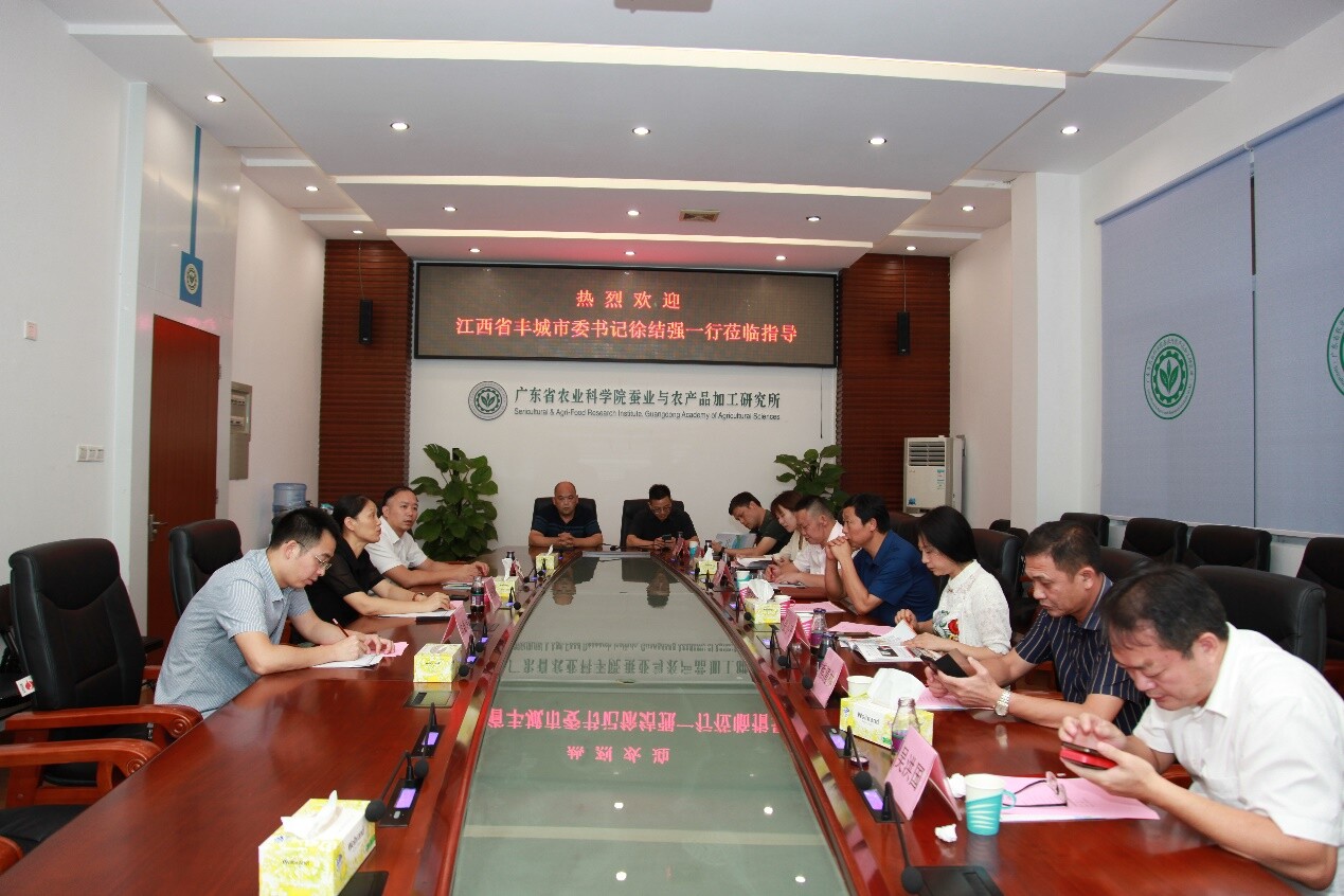 8月29日,江西省丰城市委书记徐结强、市政协党组书记、主席张小平、副市长鲁毅等一行9人到加工所调研交流,加工所所长徐玉娟、副所长吴继军率科技科相关人员参加了座谈会。