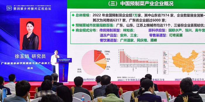 在论坛上,徐玉娟作《广东预制菜产业发展创新与实践》报告,详细介绍了广东省预制菜的产业概况和企业案例,分享了加工所在预制菜领域坚持博士与厨师结合、实验室与厨房结合,为“美味“与“健康”提供技术支撑保驾护航的经验与做法,以及取得的系列成果,助力预制菜产业健康可持续发展,进一步加深“大湾区“与“大东北”的交流合作。
