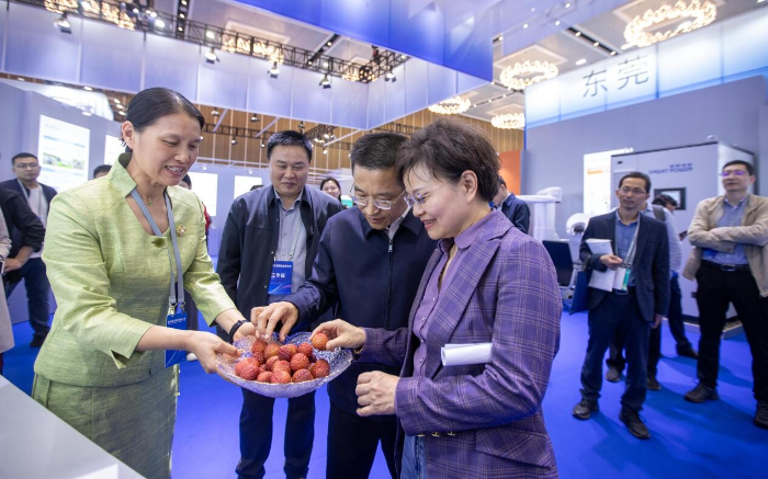 新春伊始,2月18日,广东省委、省政府在创新活力之城深圳隆重召开全省高质量发展大会。此次会议的亮点之一是省主会场同步举办的产业科技融合发展成果展。足球博彩平台 党委书记邓诣群带领我所徐玉娟所长以及果蔬加工创新团队余元善研究员及程丽娜副研究员,参展并展示了创新成果——超低温冻眠锁鲜荔枝技术。