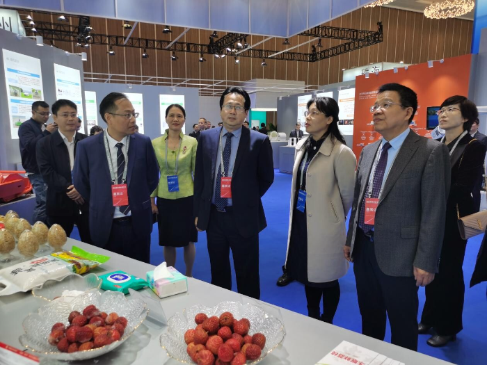省农业农村厅刘棕会书记莅临展台(左一省农科院邓诣群书记、右一省农科院张名位副院长)