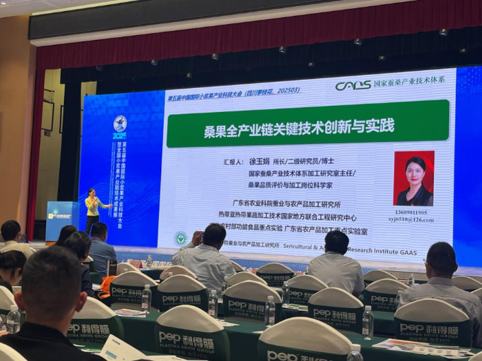 近日,由国家浆果加工技术研发专业中心等单位主办的2025年第五届中国国际小浆果产业科技大会在四川省攀枝花市举行。国家蚕桑产业技术体系桑果品质评价与加工岗位科学家、加工所所长徐玉娟研究员带领相关科研骨干参加会议。