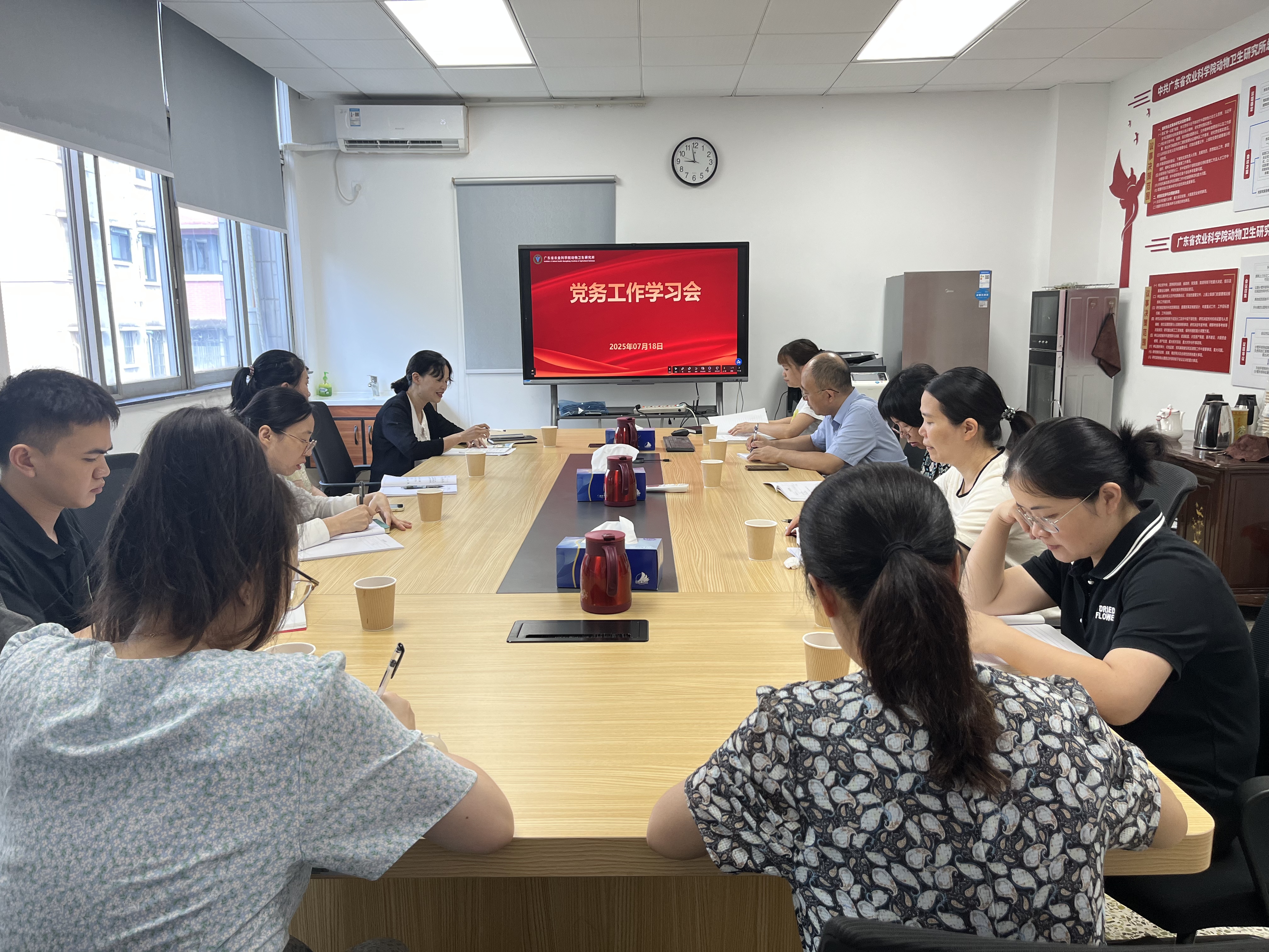 为加强基层党组织建设,提升新一届党支部班子履职能力,7月18日上午,动卫所党总支开展新一届党支部委员集体谈话及党务工作交流会,会议由所党总支书记黄丽芸主持,各党支部委员和支部党员共11人参加会议。