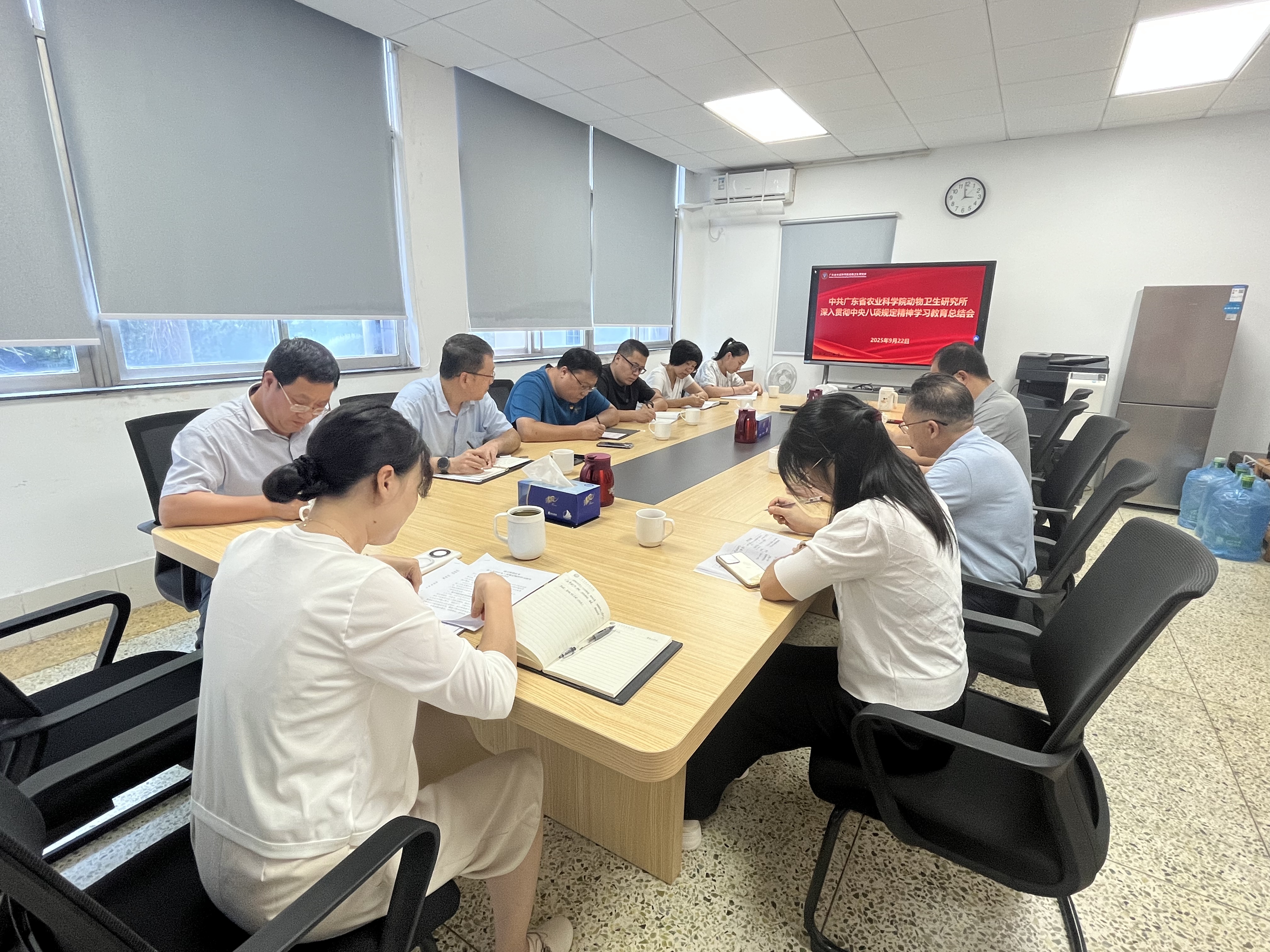 9月22日,动卫所党总支召开深入贯彻中央八项规定精神学习教育总结会,所党总支委员、各党支部书记、组织委员(纪检委员)参加会议。会议由所党总支书记黄丽芸主持。