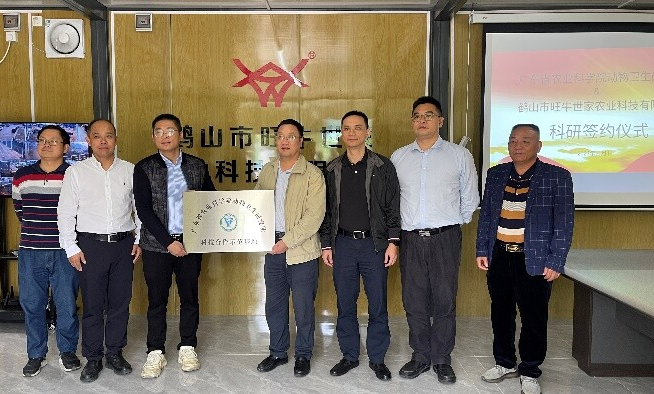 期间,动卫所王刚研究员和黄元副研究员到鹤山市旺牛世家农业科技有限公司参加挂牌签约仪式。鹤山市旺牛世家农业科技有限公司与动卫所签订框架合作协议,正式挂牌成为动卫所科技合作示范基地。鹤山市旺牛世家农业科技有限公司主要经营肉牛饲养、屠宰、加工和相关食品销售,双方将在科技示范、成果推广和技术攻关等多方面开展合作。