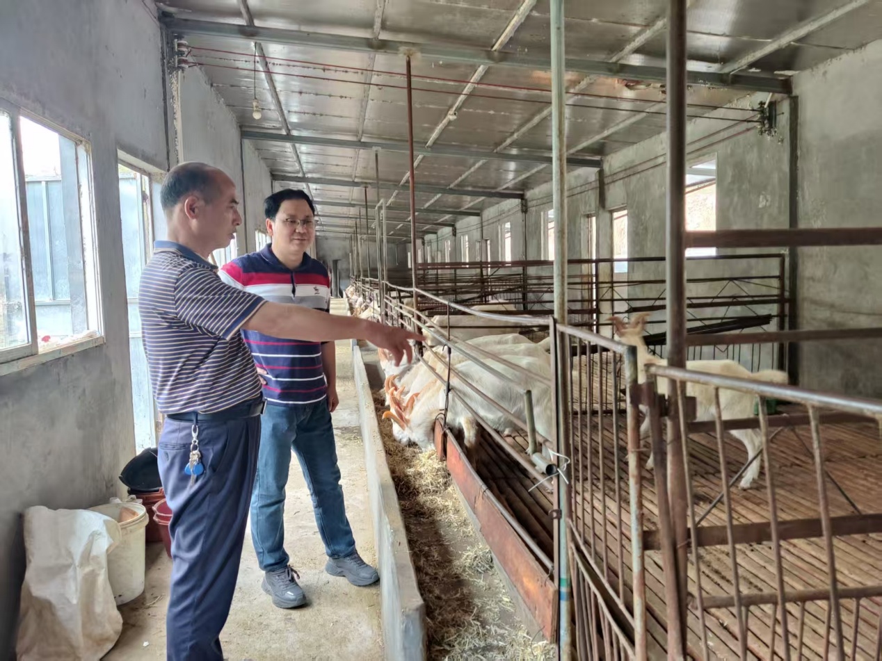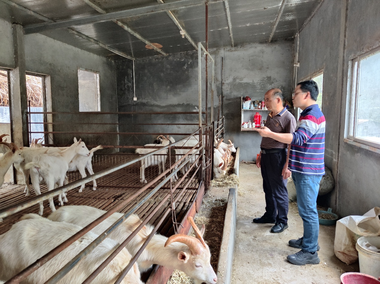 会后,特派员团队先后来到广东华威洋畜牧有限公司山羊养殖基地和乾元坤山林养殖鸡场,为养殖人员提供现场指导。在广东华威洋畜牧有限公司山羊养殖基地,黄元指导养殖场负责人合理制定免疫流程,做好产后护理和营养管理,并对羊群进行了采样,以便进行摸底性检测,为综合性防控打好基础。在乾元坤山林养殖鸡场,林栩慧帮助养殖人员分析蛋鸡产蛋率下降的原因,指导做好鸡球虫等寄生虫的防治。