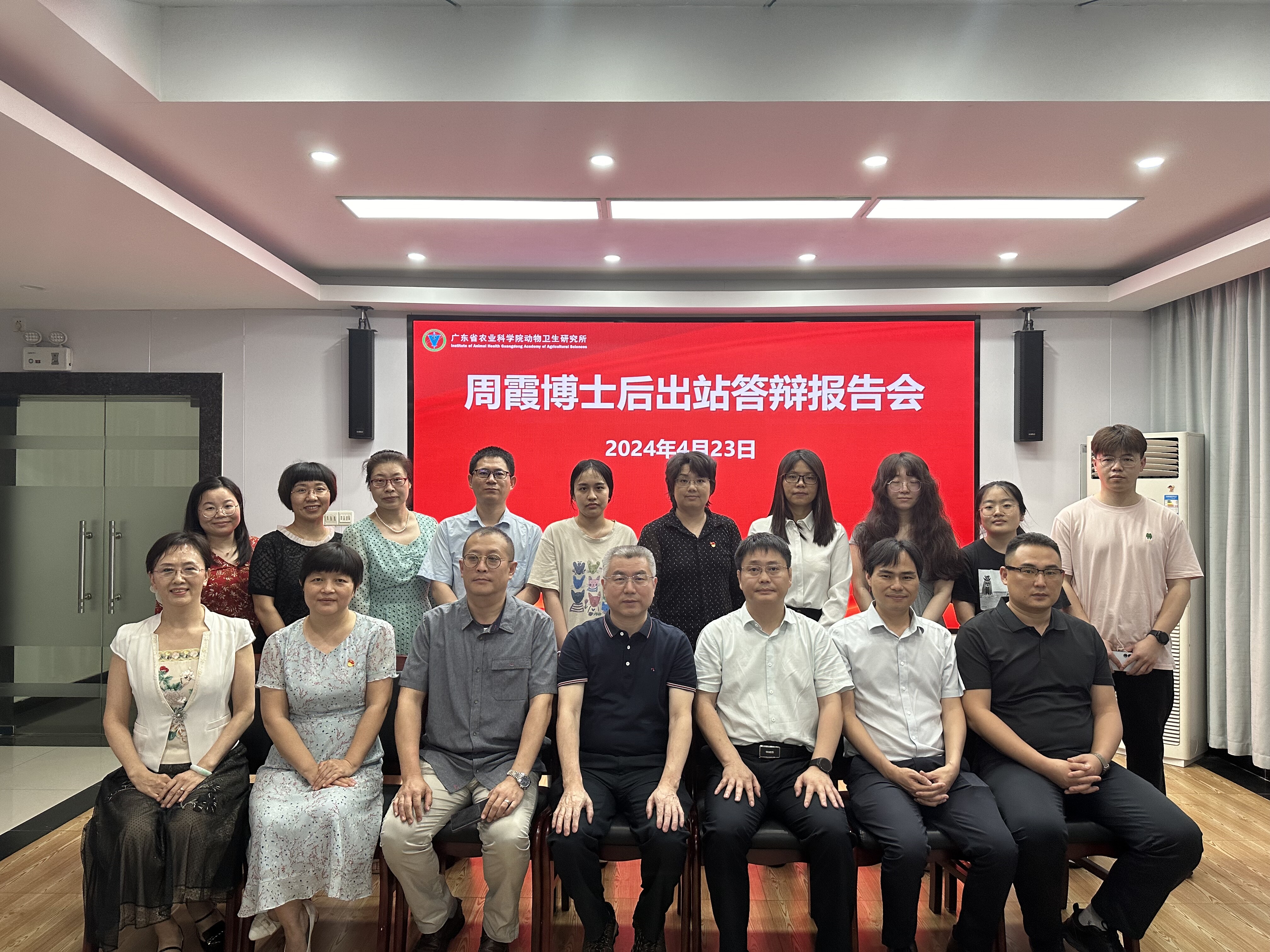 4月23日下午,动卫所组织召开周霞博士后出站答辩报告会。华南农业大学宋长绪研究员、动卫所孙铭飞研究员、华南师范大学周小明研究员、仲恺农业工程学院王玮教授和广东省实验动物监测所丛锋研究员等5位专家组成答辩委员会。相关科技人员及研究生共30余人参会,会议由动卫所党总支书记梅盈洁主持。