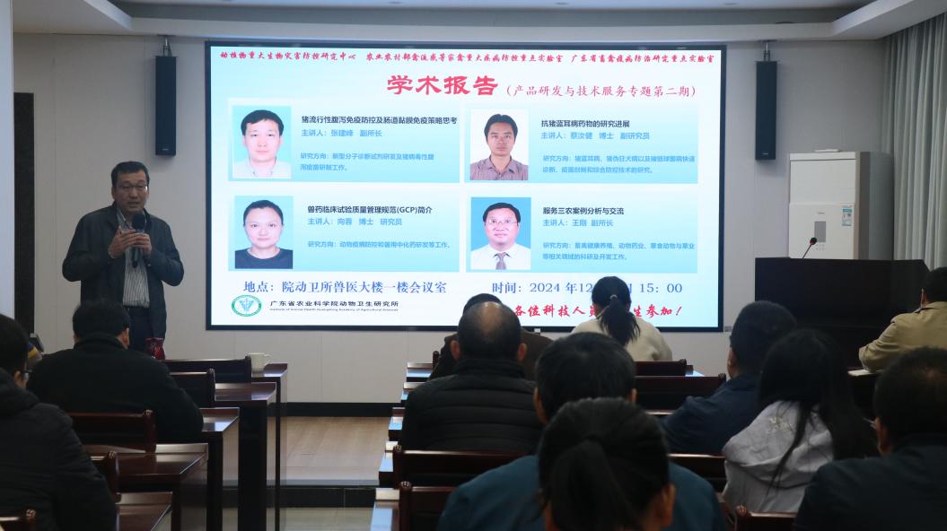 为强化所内科技人员学术交流与协同合作效能,有力推动产品研发与技术服务推广,并为2025年服务三农工作的开展谋好篇、布好局,12月30日,动卫所举办“产品研发与技术服务专题(第二期)”学术交流会。动卫所所长孙铭飞研究员、副所长王刚研究员、张建峰研究员及所内各研究室主任、科技人员及联合培养研究生等近40人参加会议。会议由张建峰主持。