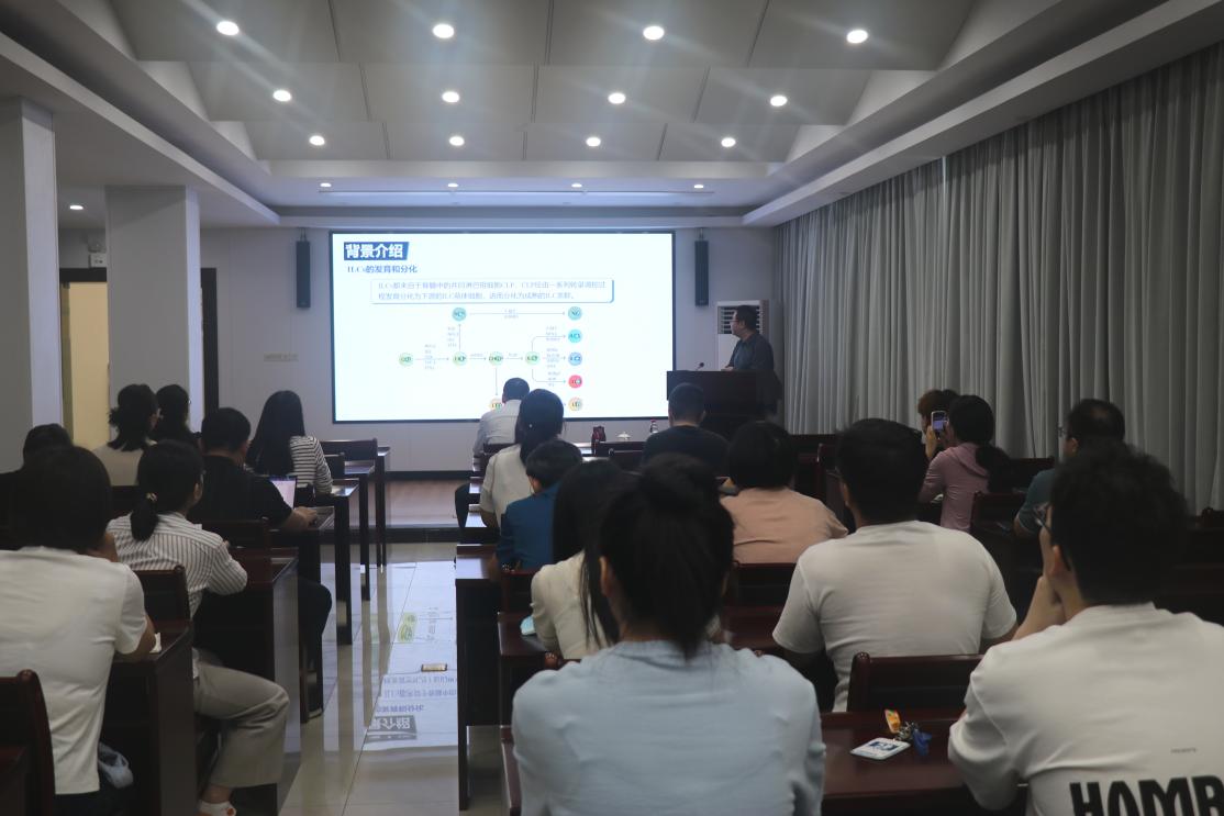 会上,曹欣教授作了题为“鼠李糖乳杆菌GG株代谢物促进仔猪肠道ILC3分泌IL-22抑制PEDV感染的机制研究”的学术报告,系统介绍了其团队在肠道菌群代谢产物与仔猪流行性腹泻病毒(PEDV)相互作用机制方面取得的重要进展。报告以猪流行性腹泻防控为切入点,围绕PEDV感染仔猪肠道菌群组学分析、肠道ILCs的鉴定和分型、LGG及其代谢产物促进ILC3发育拮抗PEDV感染、体外模型构建及AhR-ILC3-IL-22调控通路验证等研究内容和成果进行了详细介绍。科技人员兴趣浓厚,在学术交流环节中围绕ILC3分选技术标准、类器官模型标准化构建等关键技术问题进行了咨询,专家认真解答并与科研人员就该领域相关前沿技术问题展开热烈讨论。本次学术交流中曹欣教授整合免疫组学、微生物组学与类器官培养技术的研究范式,不仅拓展了科研人员的研究思路,也为猪肠道病毒病防治提供了新的防控思路。