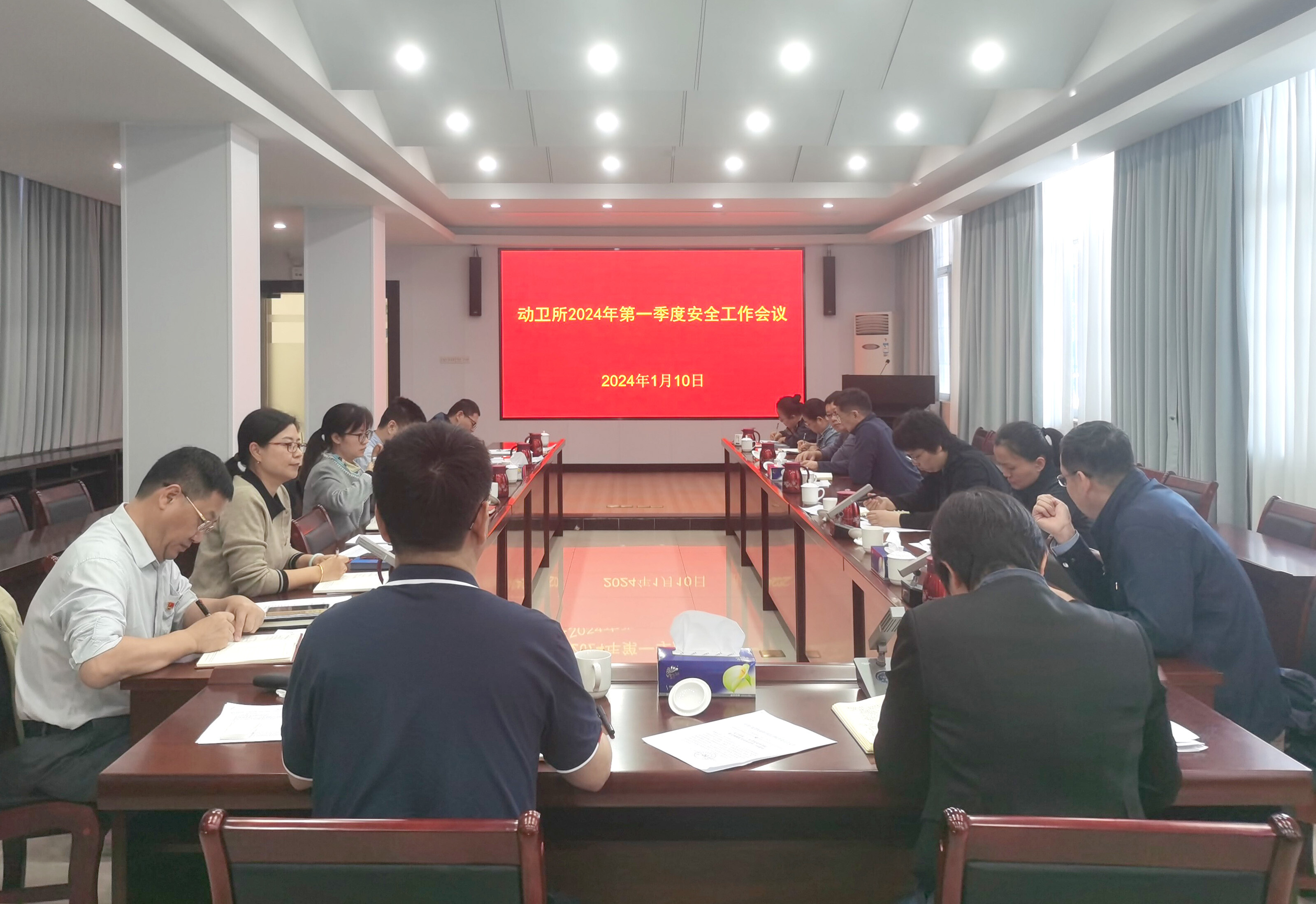 1月10日,动卫所召开2024年第一季度安全工作会议,所领导班子成员、安全工作领导小组成员、各部门主要负责人共15人参加会议。会议由所党总支书记梅盈洁主持。