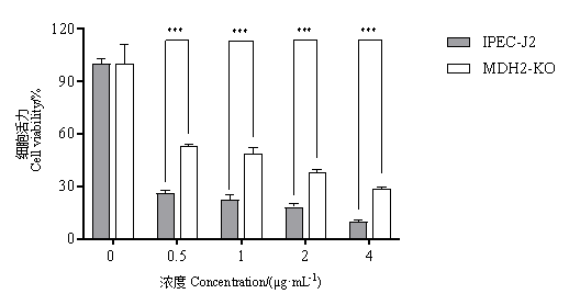 图1 CCK8检测MDH2基因敲除对IPEC-J2细胞抗DON毒素效应的影响