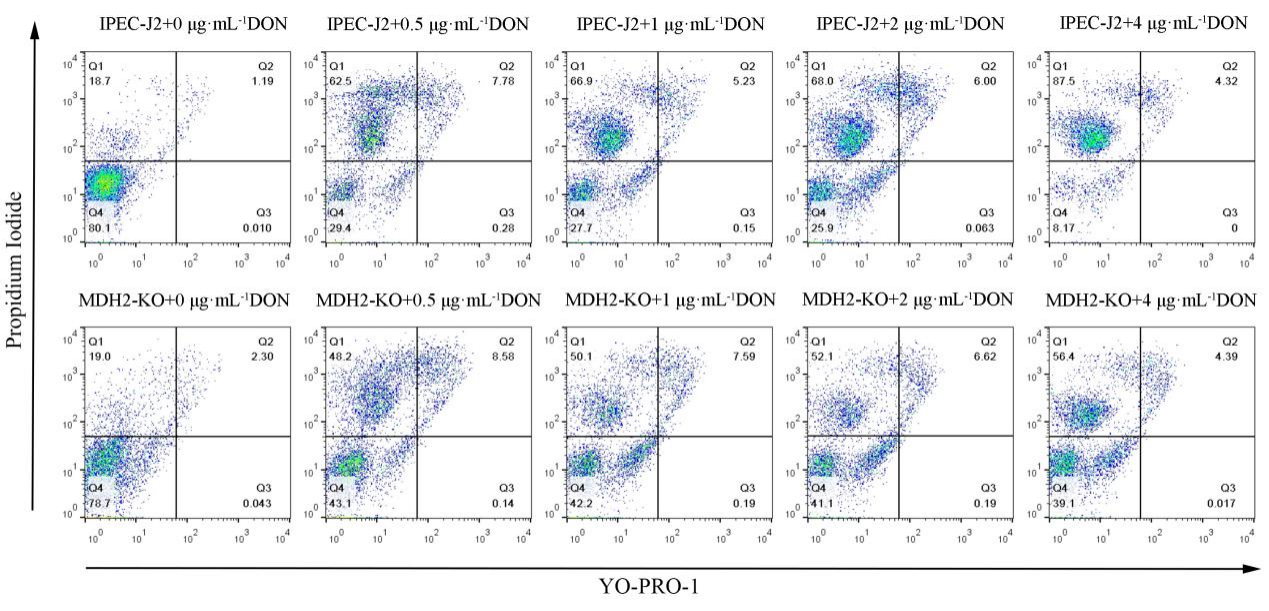 图2 流式检测DON处理后IPEC-J2和MDH2-KO的细胞死亡率
