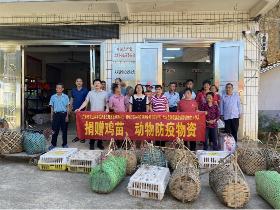 洲瑞镇位于广东省梅州市大埔县的西南部,种植产业以水稻、茶叶、烟、青梅为主,养殖业以猪、鸡养殖为主。养殖业作为农民增收的重要产业,在乡村振兴中扮演着重要的角色。团队为洲瑞镇动物防疫站送上了包含疫苗冷藏箱、疫苗连续注射器、消毒剂等一批实用动物防疫用品。为优化家禽品种结构、增强抗病力并降低疫病风险,团队还特别引进了700多只高产抗病的优质鸡苗。此举预计可助力养殖户年均增收10%以上。