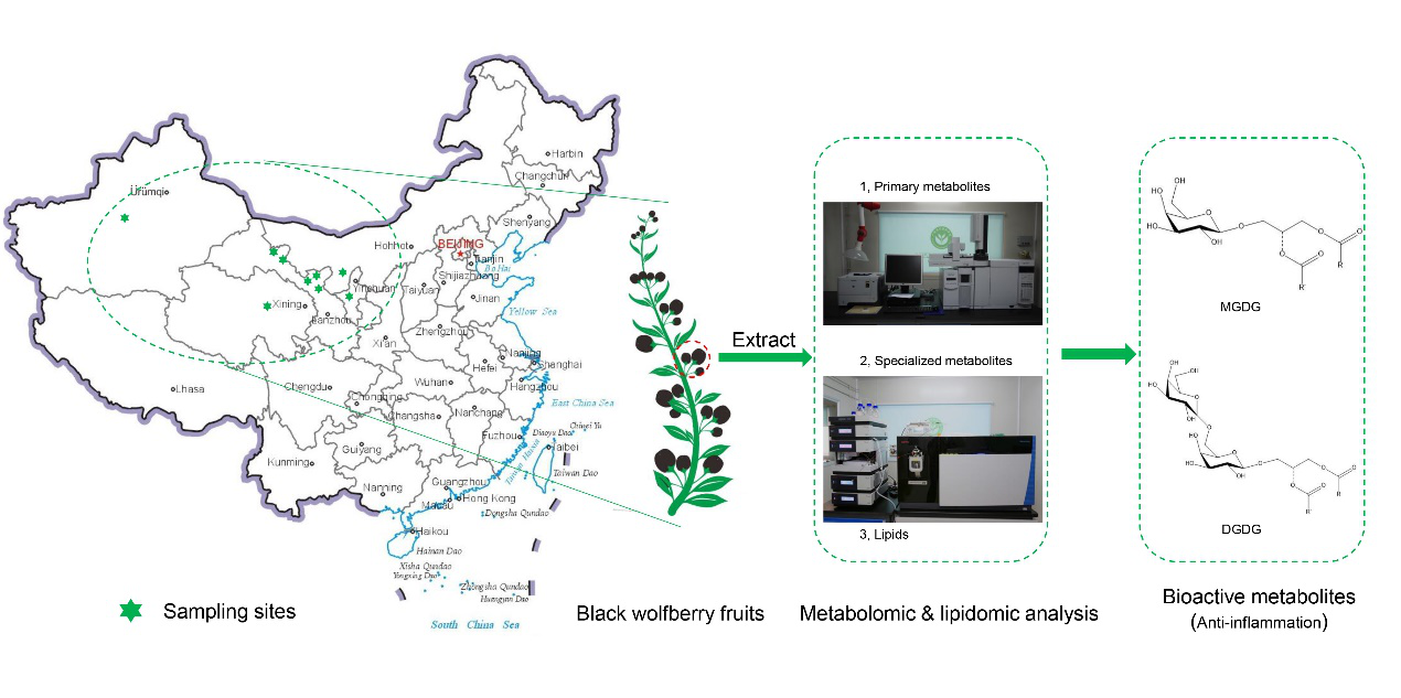 农业生物基因研究中心(基因中心)的代谢组学与品质安全团队(筹)与兰州大学合作在国际著名期刊《Food Chemistry》 (JCR一区,IF=7.514)上发表了题为Environmentally-driven metabolite and lipid variations correspond to altered bioactivities of black wolfberry fruit的最新研究成果。基因中心与兰州大学联合培养研究生陈梦雨和基因中心黄文洁为共同第一作者,基因中心晏石娟与兰州大学黄小丹为共同通讯作者。
