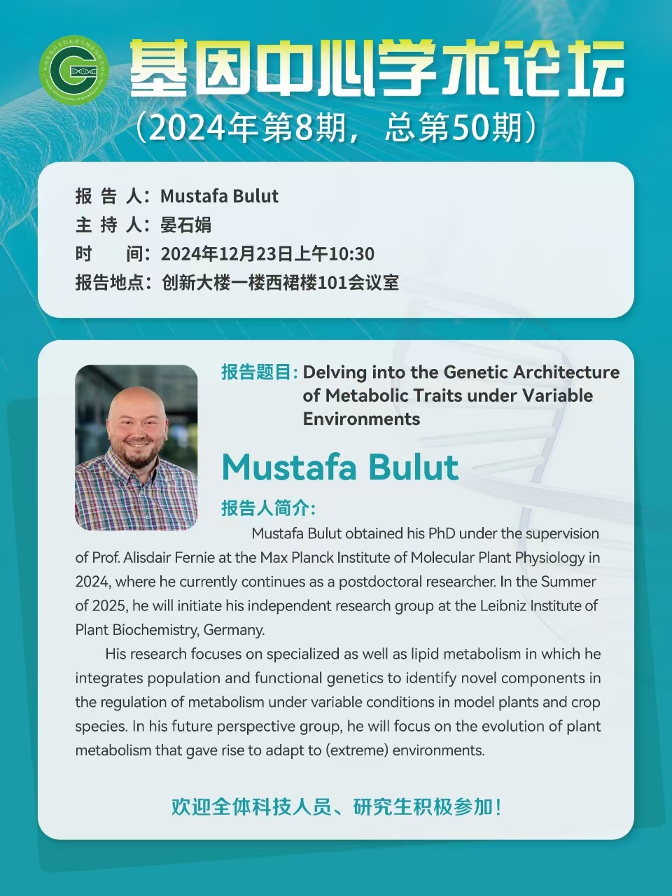 【学术论坛】 基因中心学术论坛(第50期):Delving into the Genetic Architecture of Metabolic Traits under Variable Environments